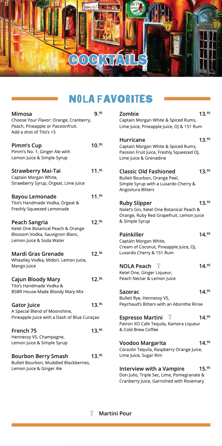 $7.95 Mini Hurricanes, Pimm’s Cup & Bayou Lemonade